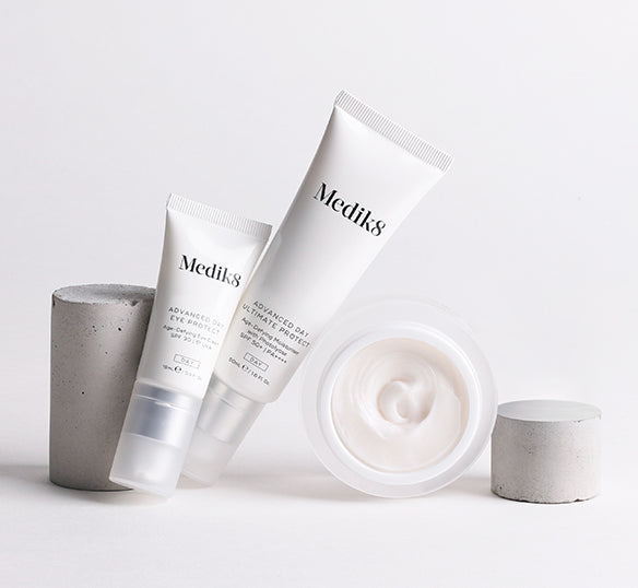 At Medik8, we advocate daily sunscreen application as an essential part of maintaining a healthy, youthful-looking complexion. Sunscreen should be a non-negotiable in every age-defying skincare routine, as UV rays can easily penetrate through clouds and glass. A high-performance sunscreen shields the skin against visible signs of ageing including fine lines and wrinkles, loss of firmness, elasticity and dark spots, as well as protecting against the harmful effects of UVA (ageing) and UVB (burning) rays.