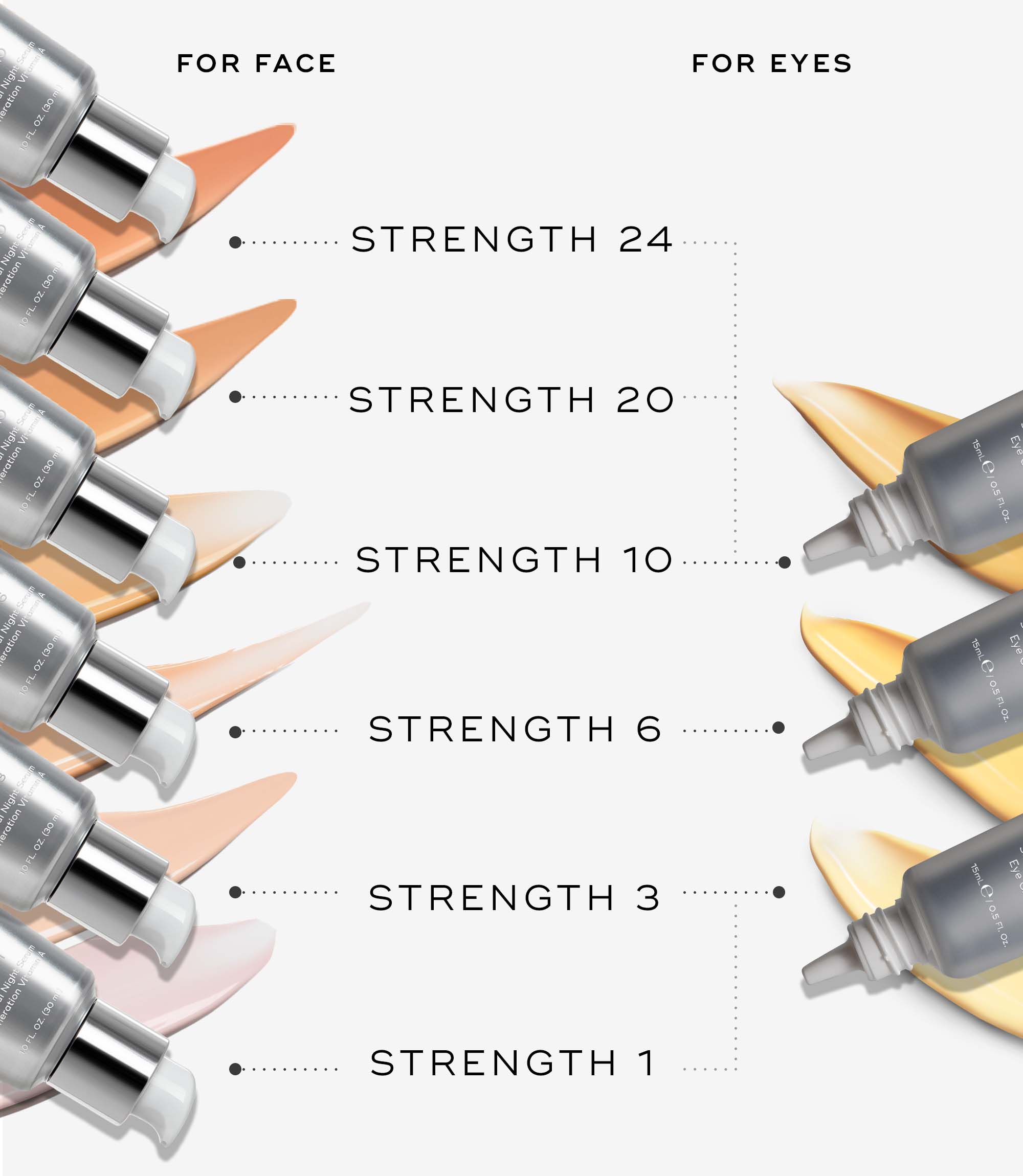 Ladder up your visible age-defying results over time with our 6 progressive strengths (0.01% - 0.24% retinaldehyde). Unsure which strength is right for you? Choose your strength below or take our Strength Finder quiz.