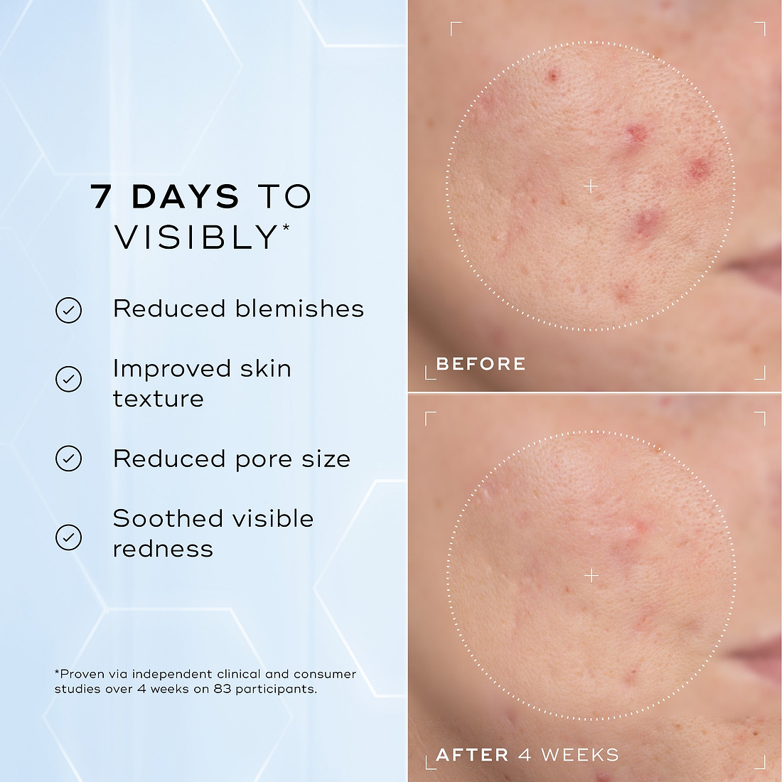 ✓ Visibly clearer and smoother skin texture with visible pore reduction*