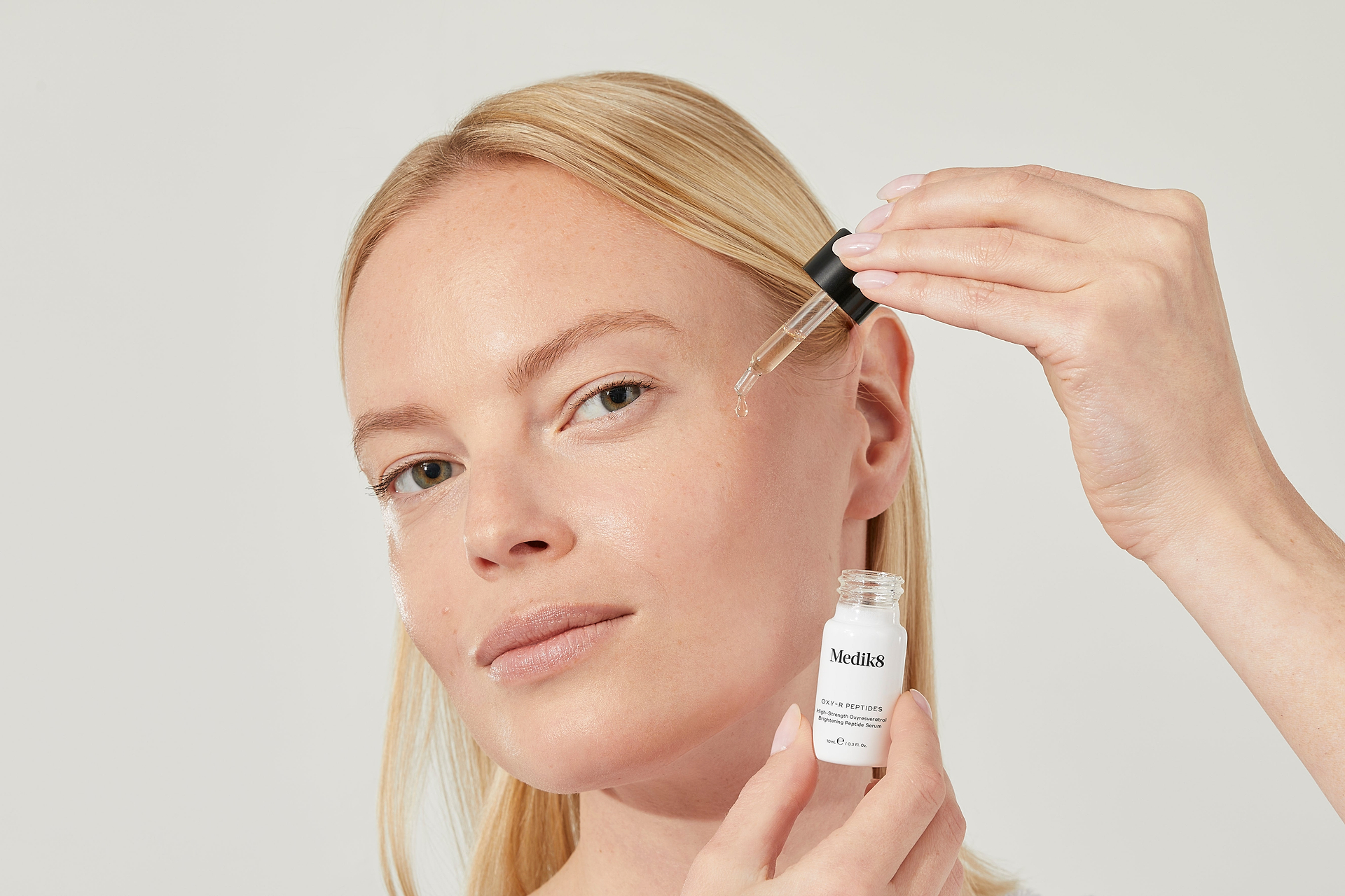 Introducing our targeted solution to hyperpigmentation, new to the peptide family. Oxyresveratrol (Oxy-R) is a gold-standard hyperpigmentation ingredient, stabilised in a Medik8 patented system, at our highest ever dose of 1%.