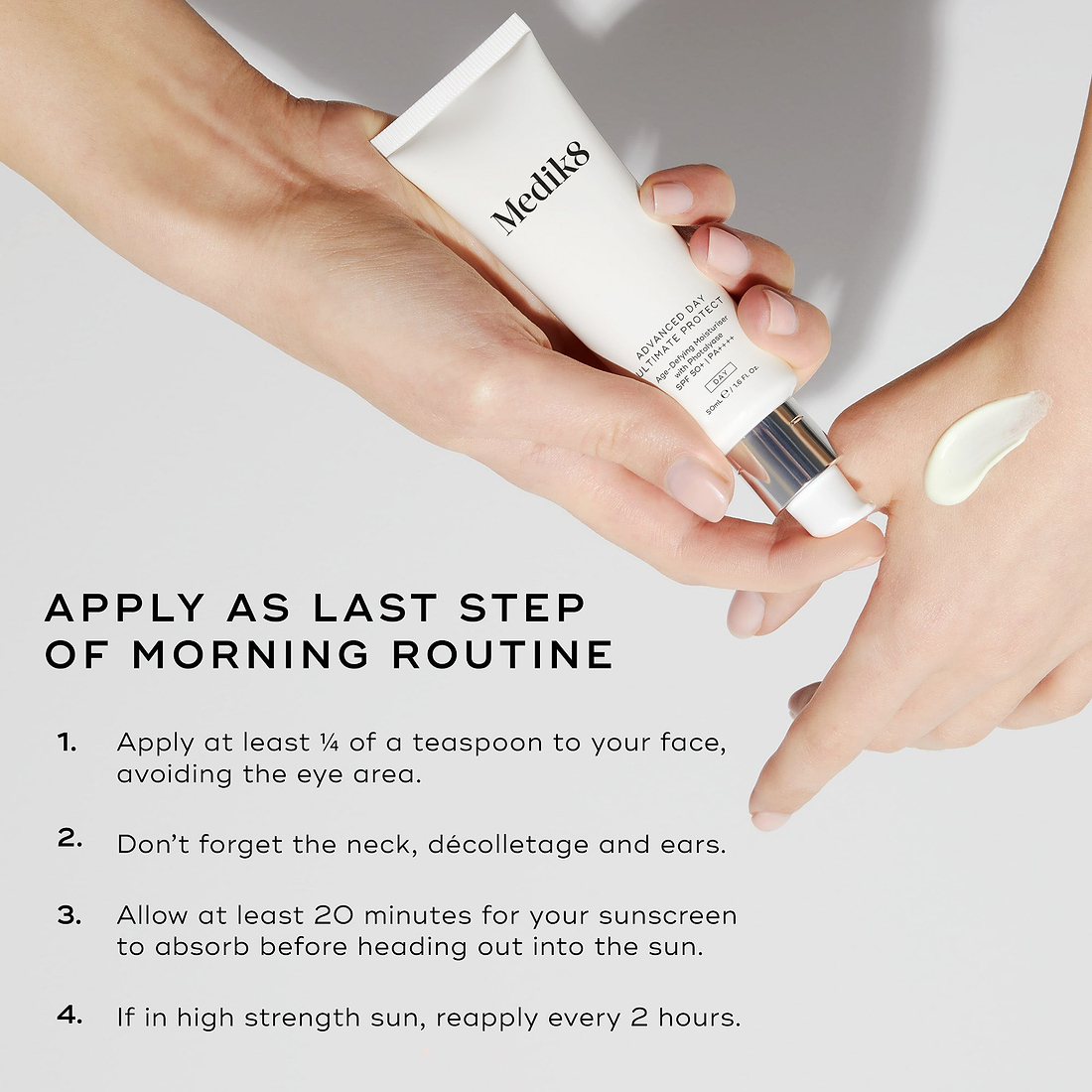 All Medik8 sunscreens deliver high SPF ratings and ‘broad spectrum’ protection, with our Advanced range also meeting the highest star rating (5*) of Ultra UVA protection. Advanced Day Ultimate Protect additionally offers the highest rating of PA++++ protection.