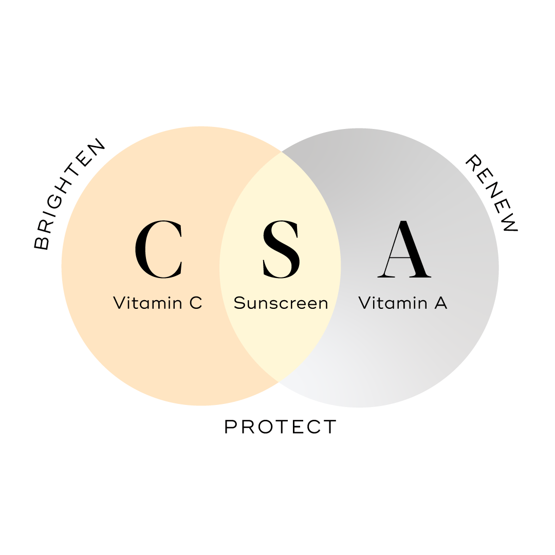 [2] Based on average change in key indicators of skin ageing, in a clinical study on 63 participants using a CSA skincare regime over 12 months.